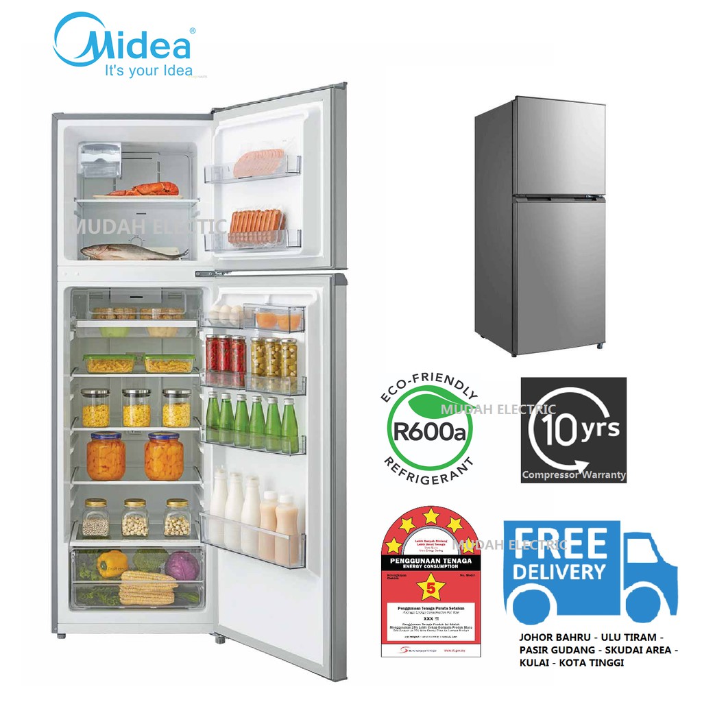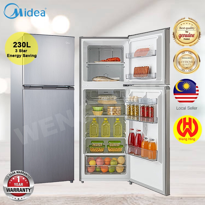 Jnt only for melaka others please chosse thelorry product details of midea 2 door refrigerator md 232v 230l 3 star energy saving 10 year compressor warranty gross capacity.